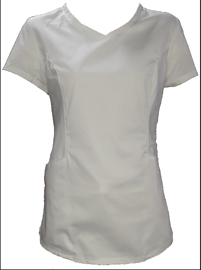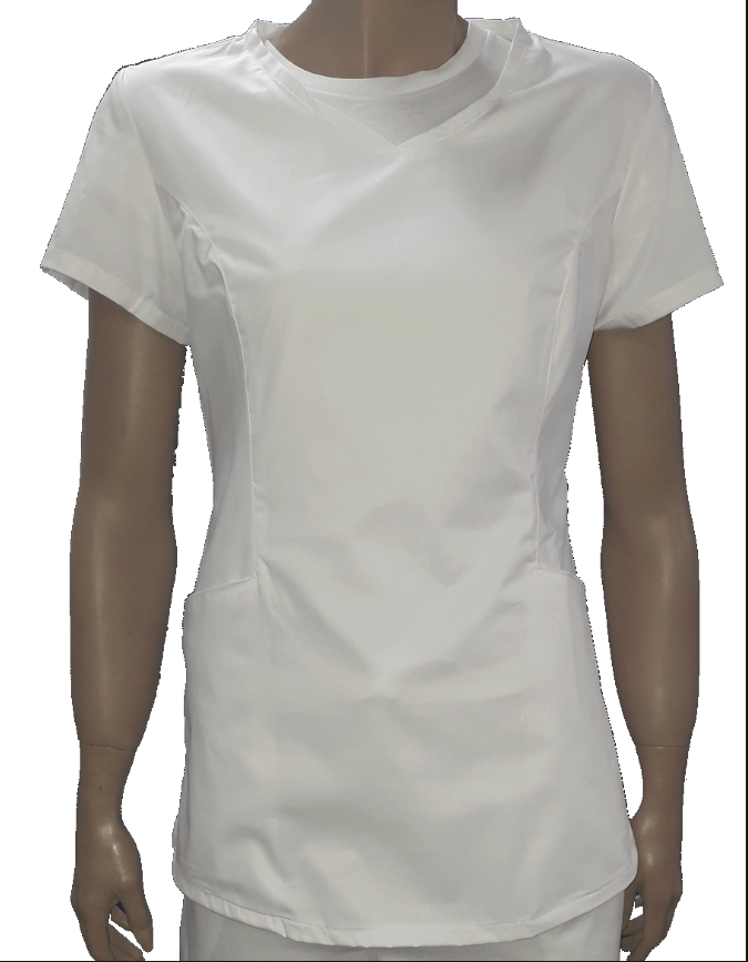 Bijela bluza za medicinske sestre sa kratkim rukavima, sa dva ušivna džepa.